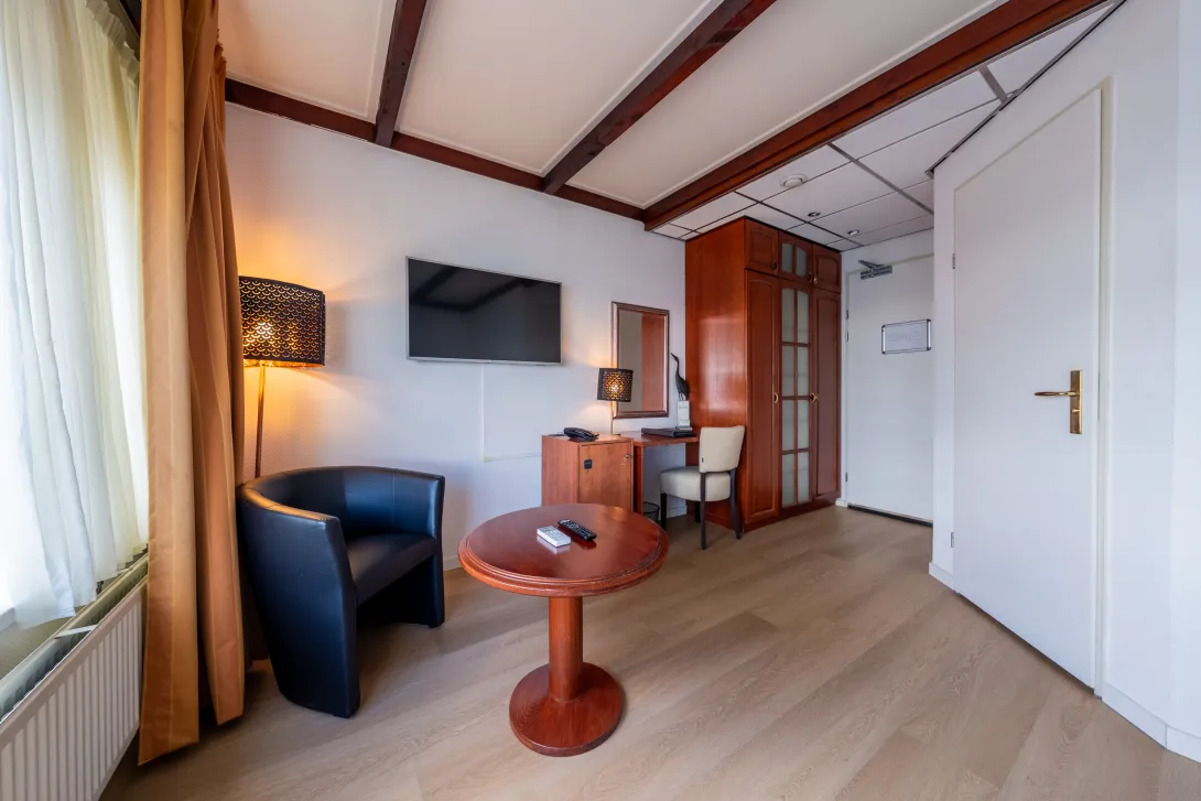 These rooms are equipped with 2-single beds, a large wardrobe, desk, sitting area, minibar, large LCD TV, Senseo coffee machine, free WIFI.